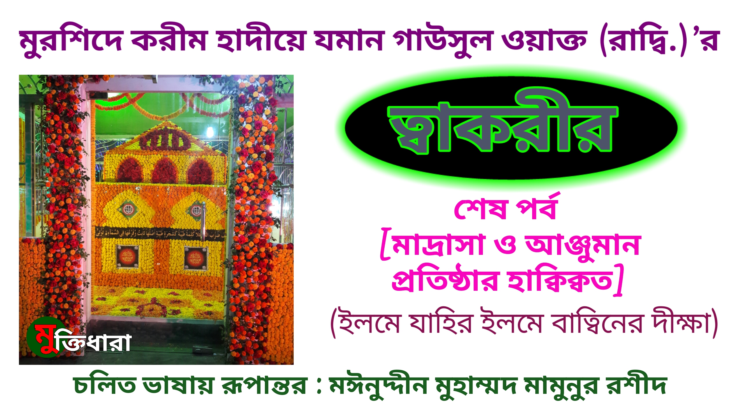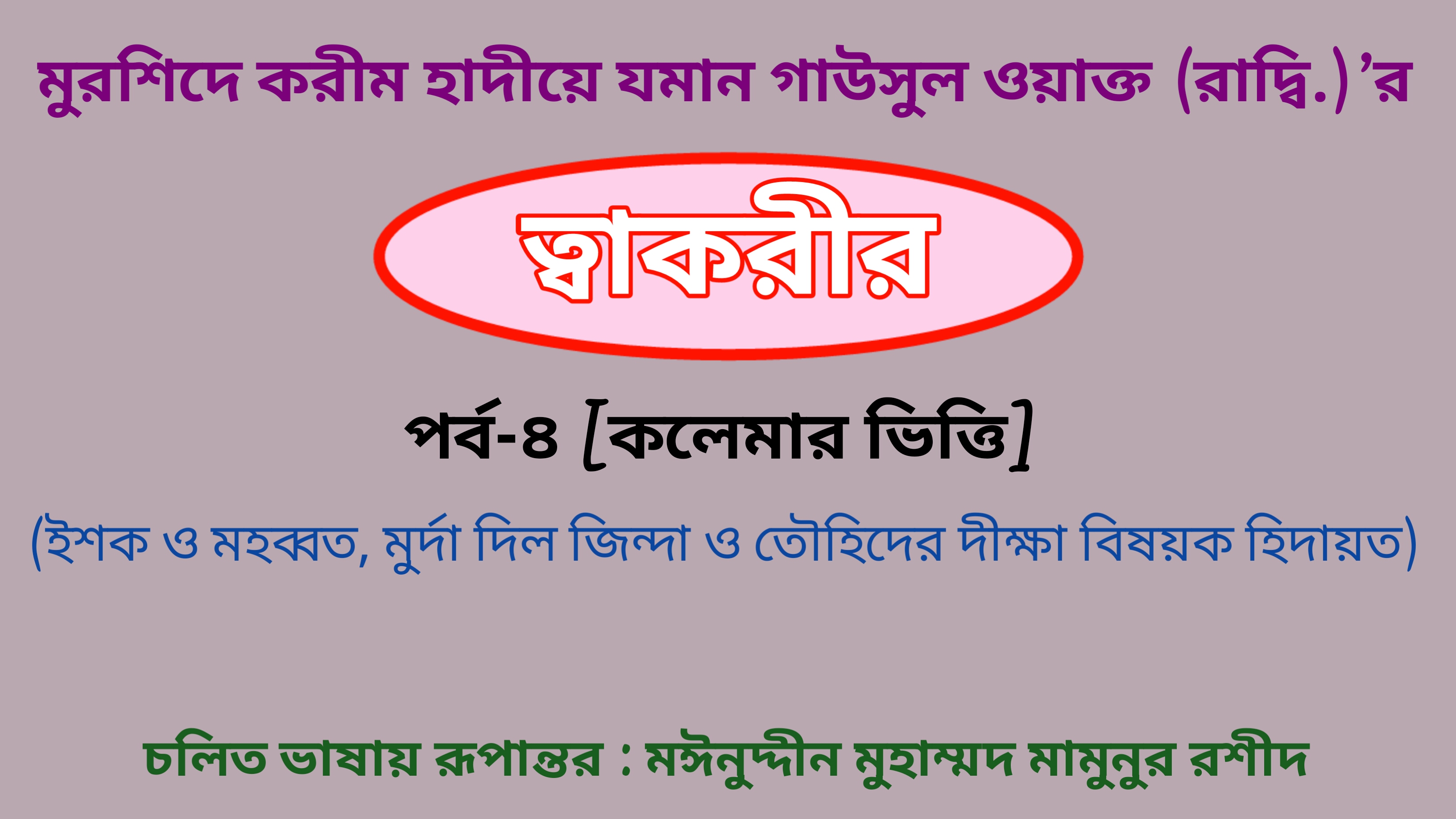 চলিত ভাষায় রূপান্তর : মঈনুদ্দীন মুহাম্মদ মামুনুর রশীদ [বি. দ্র.: ১৯৮৭ সনের ১২ রবিউল আওয়াল আঞ্জুমানে তৌহীদ বতোফায়লে রশীদের উদ্যেগে হারুয়ালছড়ি গাউসিয়া রহমানিয়া সুন্নিয়া মাদ্রাসায়