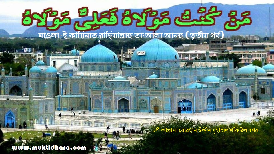 মাওলা-ই কায়িনাত রাদ্বিয়াল্লাহু তা‘আলা আনহু    (তৃতীয় পর্ব) ✒আল্লামাহ্ বোরহান উদ্দীন মুহাম্মদ শফিউল বশর